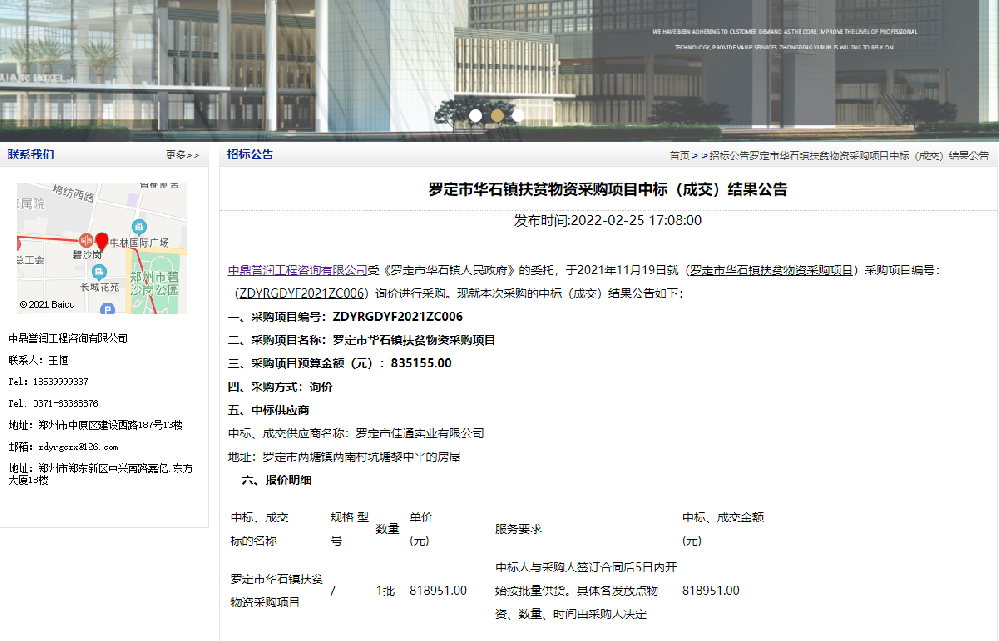 • 羅定市羅平鎮2021年扶貧物資采購 項目中標(成交)結果公告 2022-02-25